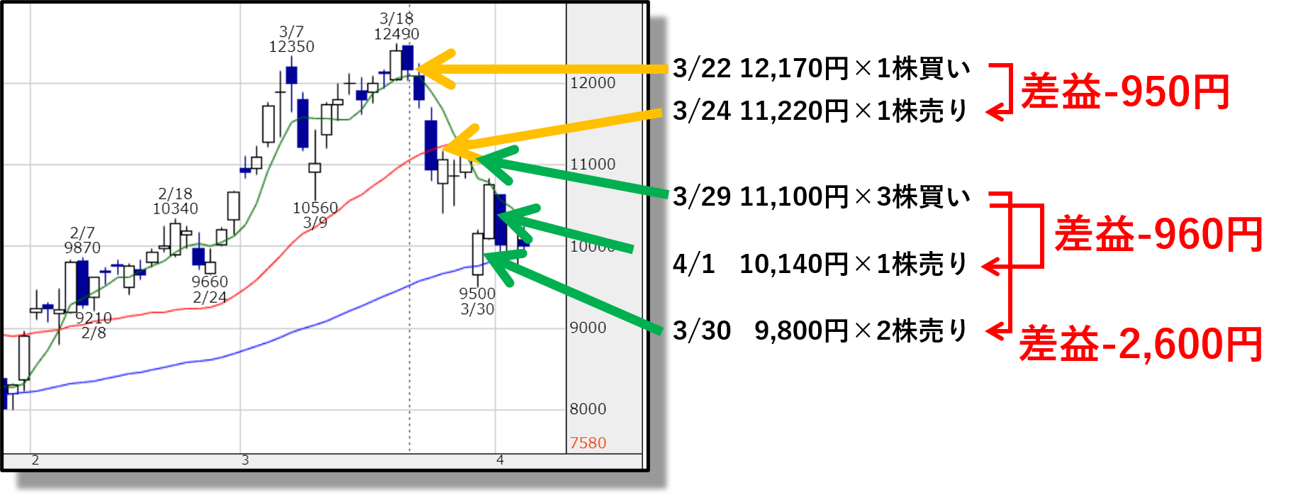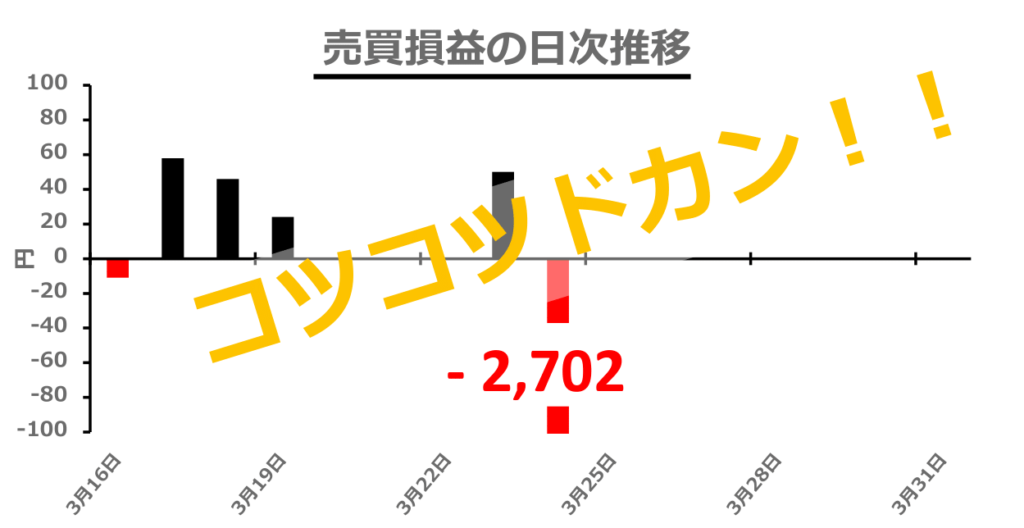 初めの負け以降、4日連続で毎日数十円ずつ勝ってきていたところ、一気に数千円レベルの負けです(笑)